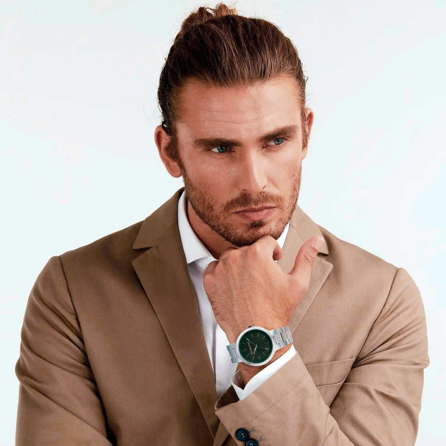 Итальянские мужские часы Trussardi Loud R2453164002 - это стильный мужской аксессуар, который сочетает элегантный дизайн и практичность. Корпус выполнен из нержавеющей стали, что обеспечивает долговечность и утончённый внешний вид. Надежное минеральное стеклоМинеральное стеклоМинеральное стекло представляет собой искусственно выращенный минерал кварца. Такое стекло отличается особой устойчивостью к повреждениям и царапинам. Уступает по некоторым качествам сапфировому стеклу. защищает циферблат от царапин и обеспечивает долговечность. Окошко даты в положении 6 часов. Стрелки оснащены люминесцентным покрытиемЛюминесцентное покрытиеПозволяет считывать показания времени в темноте. Производители наносят на стрелки, часовые индексы, безель или поверхность циферблата светонакопительный состав, дающий холодное свечение., обеспечивающим отличную видимость даже при слабом освещении. Модель оснащена кварцевым механизмом, обеспечивающим высокую точность хода. Браслет из нержавеющей стали с раскладной застёжкойРаскладная застёжкаТакой тип застёжки используется только на браслетах из металла. Она никогда не раскрывается полностью, происходит разделение на 2 и более частей. Раскладывающая застёжка снизит вероятность потери часов к минимуму. обеспечивает комфортное ношение. Водозащита 50 метров позволит защитить корпус от случайных брызг или капель дождя. Эта модель – отличный выбор для тех, кто ищет сочетание стиля, качества и функциональности. Часы станут не только полезным аксессуаром, но и выразительным элементом вашего имиджа.