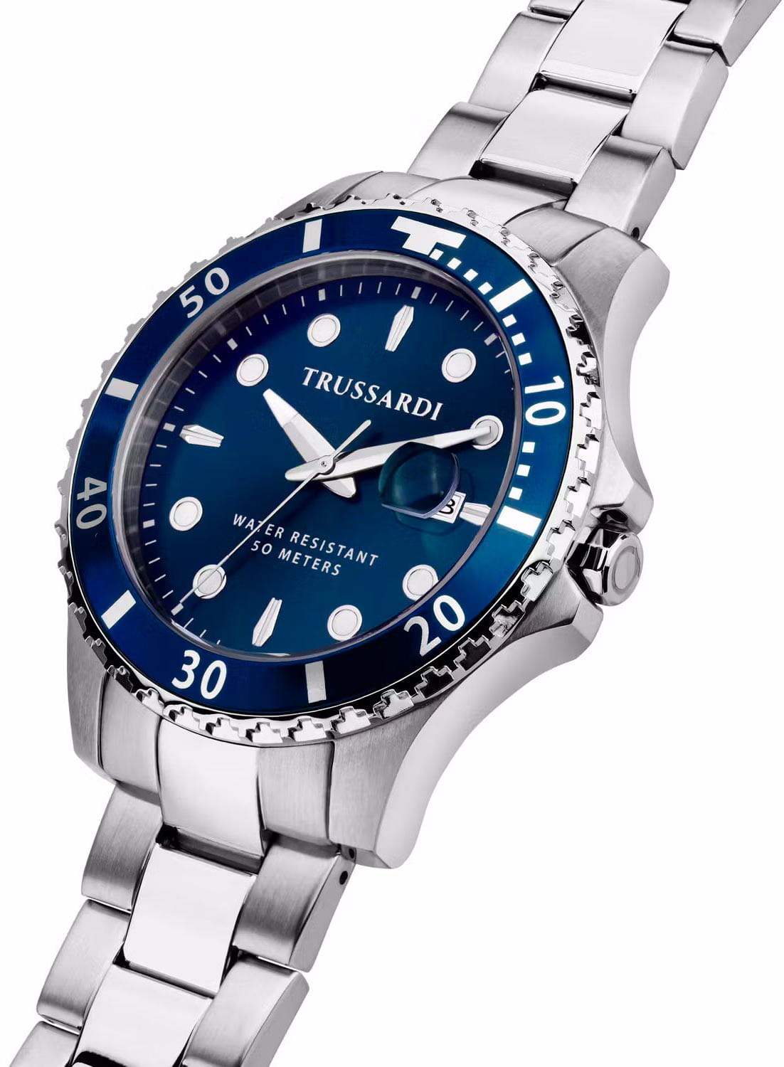 Итальянские мужские часы Trussardi City Life R2453169006 - это стильный мужской аксессуар, который сочетает элегантный дизайн и практичность. Корпус выполнен из нержавеющей стали с безелемБезельВнешний ободок, закрепляющий стекло. В спортивных часах так называется поворотное кольцо с делениями на циферблате, выполняет роль таймера – замеряет отрезки времени на шкале. Неподвижный безель – элемент декора. Однонаправленно вращающийся безель на дайверских часах позволяет фиксировать моменты погружения и выныривания на поверхность. с IP-покрытиемIP-покрытиеМетод ионного напыления. Демонстрирует повышенную устойчивость к истиранию, окислению и химическим веществам. Под воздействием высокого давления и температуры около 1500°C молекулы металла надёжно соединяются с частицами корпуса часов., что обеспечивает долговечность и утончённый внешний вид. Надежное минеральное стеклоМинеральное стеклоМинеральное стекло представляет собой искусственно выращенный минерал кварца. Такое стекло отличается особой устойчивостью к повреждениям и царапинам. Уступает по некоторым качествам сапфировому стеклу. защищает циферблат от царапин и обеспечивает долговечность. Модель оснащена кварцевым механизмом, обеспечивающим высокую точность хода. Браслет из нержавеющей стали с раскладной застёжкойРаскладная застёжкаТакой тип застёжки используется только на браслетах из металла. Она никогда не раскрывается полностью, происходит разделение на 2 и более частей. Раскладывающая застёжка снизит вероятность потери часов к минимуму. обеспечивает комфортное ношение. Водозащита 50 метров позволит защитить корпус от случайных брызг или капель дождя. Окошко даты в положении 3 часов. Стрелки метки оснащены люминесцентным покрытиемЛюминесцентное покрытиеПозволяет считывать показания времени в темноте. Производители наносят на стрелки, часовые индексы, безель или поверхность циферблата светонакопительный состав, дающий холодное свечение., обеспечивающим отличную видимость даже при слабом освещении. Эта модель – отличный выбор для тех, кто ищет сочетание стиля, качества и функциональности. Часы станут не только полезным аксессуаром, но и выразительным элементом вашего имиджа.