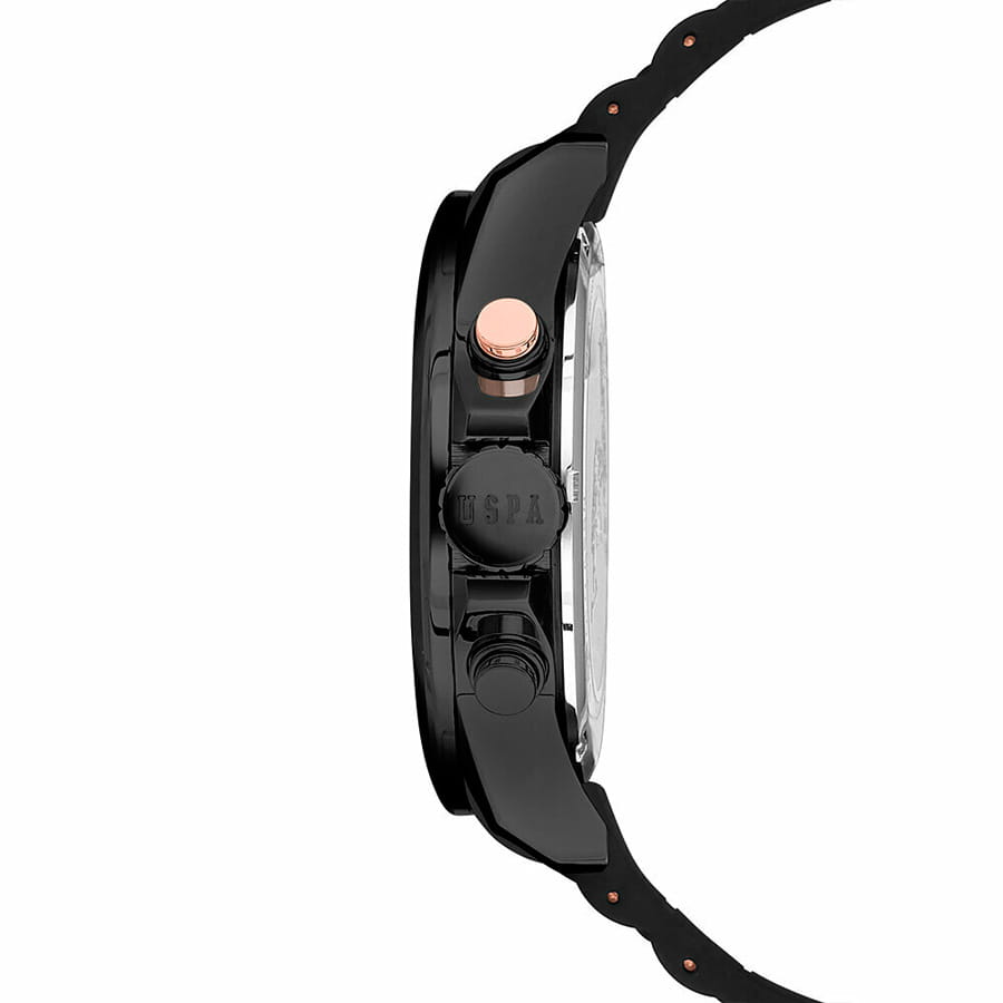 Американские мужские кварцевые часы U.S. Polo Assn. Crossing USPA1009-06, кварцевый механизм с высокой точностью. Класс водозащиты: 50 метров, позволит защитить корпус от случайных брызг или капель дождя. Корпус часов изготовлен из стали, черного цвета.