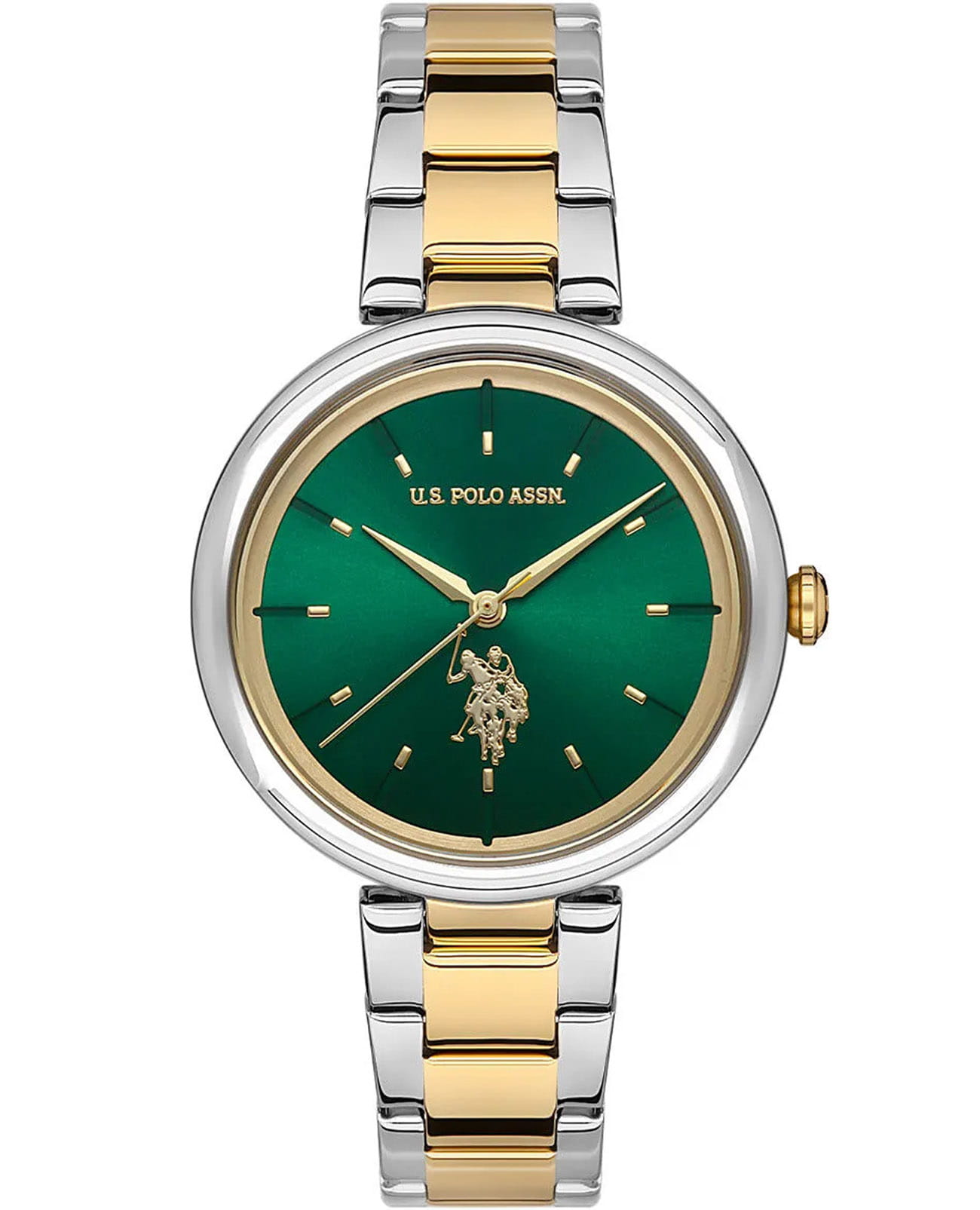 Женские элегантные часы U.S. Polo Assn. Stile USPA2015-07 кварцевый механизм с высокой точностью. Минеральное стеклоМинеральное стеклоМинеральное стекло представляет собой искусственно выращенный минерал кварца. Такое стекло отличается особой устойчивостью к повреждениям и царапинам. Уступает по некоторым качествам сапфировому стеклу. устойчивое к появлению царапин, обладающее высокой прозрачностью. Изысканный корпус изготовлен из нержавеющей стали. Лаконичные золотистые центральные часовая, минутная и секундная стрелки. Класс водозащиты: 30 метров, позволит защитить корпус от случайных брызг или капель дождя. Стальной браслет с IP-покрытиемIP-покрытиеМетод ионного напыления. Демонстрирует повышенную устойчивость к истиранию, окислению и химическим веществам. Под воздействием высокого давления и температуры около 1500°C молекулы металла надёжно соединяются с частицами корпуса часов. с раскладной застёжкойРаскладная застёжкаТакой тип застёжки используется только на браслетах из металла. Она никогда не раскрывается полностью, происходит разделение на 2 и более частей. Раскладывающая застёжка снизит вероятность потери часов к минимуму. обеспечивает комфорт и удобство в использовании, добавляя завершающий штрих к этому стильному аксессуару. Циферблат подчёркивает изысканный характер часов, создавая универсальный образ, подходящий как для повседневных ситуаций, так и для особых случаев.