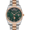 Женские часы U.S. Polo Assn. Stile USPA2054-05, кварцевый механизм с высокой точностью. Минеральное стеклоМинеральное стеклоМинеральное стекло представляет собой искусственно выращенный минерал кварца. Такое стекло отличается особой устойчивостью к повреждениям и царапинам. Уступает по некоторым качествам сапфировому стеклу. устойчивое к появлению царапин, обладающее высокой прозрачностью. Корпус изготовлен из нержавеющей стали. БезельБезельВнешний ободок, закрепляющий стекло. В спортивных часах так называется поворотное кольцо с делениями на циферблате, выполняет роль таймера – замеряет отрезки времени на шкале. Неподвижный безель – элемент декора. Однонаправленно вращающийся безель на дайверских часах позволяет фиксировать моменты погружения и выныривания на поверхность. из нержавеющей стали с IP-покрытиемIP-покрытиеМетод ионного напыления. Демонстрирует повышенную устойчивость к истиранию, окислению и химическим веществам. Под воздействием высокого давления и температуры около 1500°C молекулы металла надёжно соединяются с частицами корпуса часов. и украшен кристаллами. Окошко даты в положении 3 часов, окошко дня недели в положении 12 часов. Класс водозащиты: 30 метров, позволит защитить корпус от случайных брызг или капель дождя. Стальной браслет с частичным IP-покрытиемIP-покрытиеМетод ионного напыления. Демонстрирует повышенную устойчивость к истиранию, окислению и химическим веществам. Под воздействием высокого давления и температуры около 1500°C молекулы металла надёжно соединяются с частицами корпуса часов. на застёжке «бабочка» с кнопкамиЗастёжка "бабочка"Такой вид застёжки дополняется предохранителями, помогающими избежать случайного раскрытия браслета. Обладают изящным исполнением. .