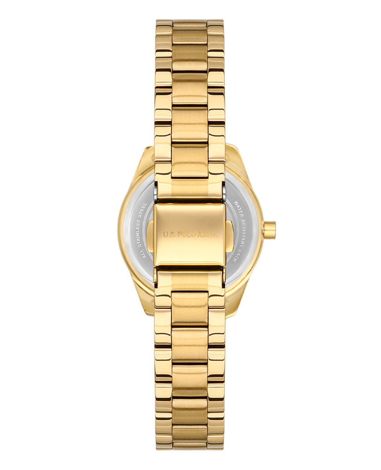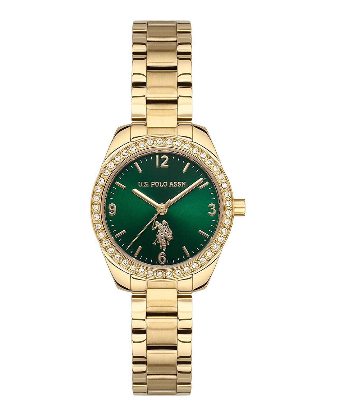 Женские часы U.S. Polo Assn Stile USPA2064-04, кварцевый механизм с высокой точностью. Минеральное стеклоМинеральное стеклоМинеральное стекло представляет собой искусственно выращенный минерал кварца. Такое стекло отличается особой устойчивостью к повреждениям и царапинам. Уступает по некоторым качествам сапфировому стеклу. устойчивое к появлению царапин, обладающее высокой прозрачностью. Корпус изготовлен из нержавеющей стали с IP-покрытиемIP-покрытиеМетод ионного напыления. Демонстрирует повышенную устойчивость к истиранию, окислению и химическим веществам. Под воздействием высокого давления и температуры около 1500°C молекулы металла надёжно соединяются с частицами корпуса часов.. БезельБезельВнешний ободок, закрепляющий стекло. В спортивных часах так называется поворотное кольцо с делениями на циферблате, выполняет роль таймера – замеряет отрезки времени на шкале. Неподвижный безель – элемент декора. Однонаправленно вращающийся безель на дайверских часах позволяет фиксировать моменты погружения и выныривания на поверхность. украшен кристаллами. Класс водозащиты: 50 метров, позволит защитить корпус от случайных брызг или капель дождя. Стальной браслет с IP-покрытиемIP-покрытиеМетод ионного напыления. Демонстрирует повышенную устойчивость к истиранию, окислению и химическим веществам. Под воздействием высокого давления и температуры около 1500°C молекулы металла надёжно соединяются с частицами корпуса часов. на раскладной застёжкеРаскладная застёжкаТакой тип застёжки используется только на браслетах из металла. Она никогда не раскрывается полностью, происходит разделение на 2 и более частей. Раскладывающая застёжка снизит вероятность потери часов к минимуму..