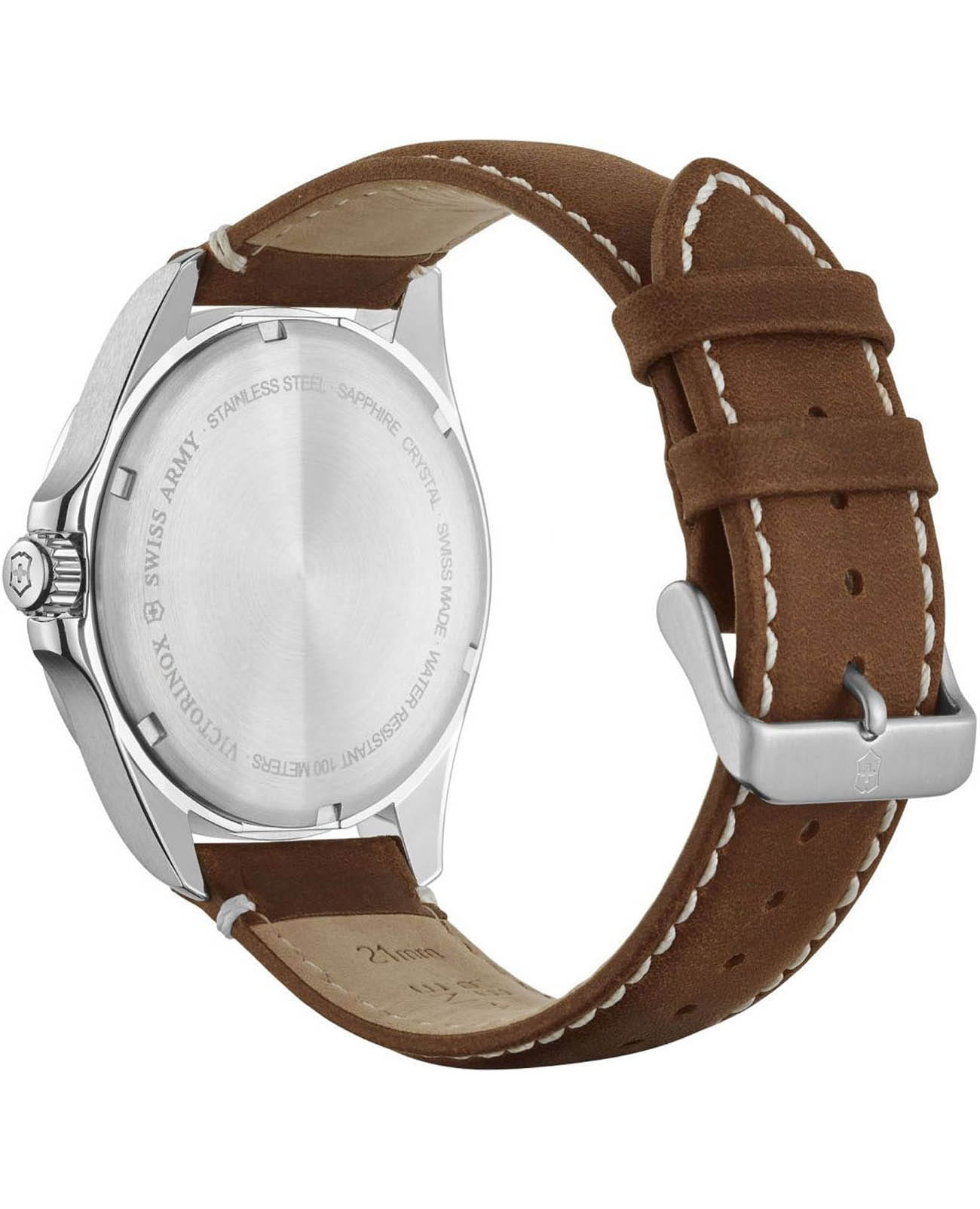 Мужские швейцарские часы Victorinox Fieldforce 241848 с надёжным кварцевым механизмом. Сапфировое стеклоСапфировое стеклоПрочный и надёжный материал из кристалла сапфира синтетического происхождения, характеризующийся особой твёрдостью и устойчивостью к царапинам и повреждениям. с трёхслойным антибликовым покрытием. Корпус часов выполнен из нержавеющей стали 316L. Практичный кожаный ремешок на стандартной застёжке. Влагозащита: 100 метров, позволит плавать, нырять и заниматься другими водными видами спорта. Окошко даты и дня недели находится в положении 3 часа. Стрелки и метки с люминесцентным покрытиемЛюминесцентное покрытиеПозволяет считывать показания времени в темноте. Производители наносят на стрелки, часовые индексы, безель или поверхность циферблата светонакопительный состав, дающий холодное свечение..