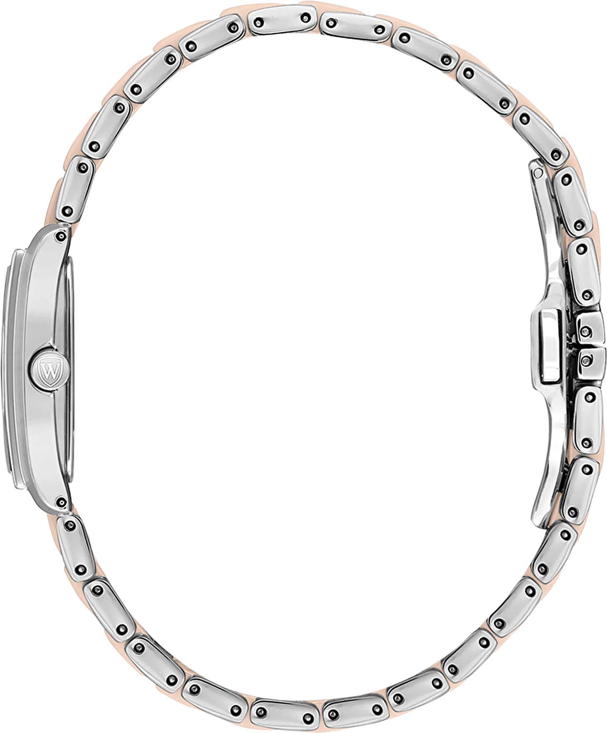 Швейцарские женские кварцевые часы Wainer WA.18060-B станут элегантным дополнением любого образа. Прямоугольный корпус из нержавеющей стали 316L размером 22х24.5 мм и толщиной 8 мм защищен прочным сапфировым стекломСапфировое стеклоПрочный и надёжный материал из кристалла сапфира синтетического происхождения, характеризующийся особой твёрдостью и устойчивостью к царапинам и повреждениям.. Циферблат с метками в виде штрихов украшен кристаллом в положении 12 часов, а заводная головка с фирменным логотипом добавляет модели особый шарм. Часы имеют класс водозащиты 30 метров, позволит защитить корпус от случайных брызг или капель дождя. Модель комплектуется стальным браслетом из нержавеющей стали 316L с керамическими вставками на раскладной застёжкеРаскладная застёжкаТакой тип застёжки используется только на браслетах из металла. Она никогда не раскрывается полностью, происходит разделение на 2 и более частей. Раскладывающая застёжка снизит вероятность потери часов к минимуму., длина браслета составляет 180 мм. Вес часов 88 грамм обеспечивает комфортное ношение в течение дня. Элегантный дизайн и надежное качество швейцарского производства делают эти часы превосходным выбором для современной женщины.
