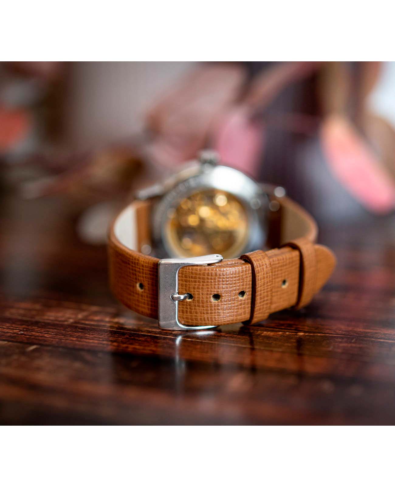 Женские наручные часы Zeppelin Princess of the Sky 7461-5 сочетают в себе элегантный дизайн и надежность автоматического механизма. Модель обладает круглым корпусом диаметром 36 мм, изготовленным из нержавеющей стали, что обеспечивает высокую устойчивость к внешним воздействиям. Браслет выполнен из коричневой кожи с классической застежкой, гарантирующей комфортное ношение и стильный внешний вид. Циферблат украшен двенадцатью камнями Swarovski, добавляющими особый шарм и элегантность. Для защиты используется минеральное стеклоМинеральное стеклоМинеральное стекло представляет собой искусственно выращенный минерал кварца. Такое стекло отличается особой устойчивостью к повреждениям и царапинам. Уступает по некоторым качествам сапфировому стеклу. с антибликовое покрытиеАнтибликовое покрытиеСлой оксида металла в 0,13-0,3 микрон, благодаря которому стекло часов не бликует и не отражает свет. Антибликовое покрытие уменьшает отражение света в 10 раз, обеспечивая отличную читаемость показателей циферблата., обеспечивающее защиту от царапин. Часы работают на автоматическом механизме, который не требует замены батареек и заряжается за счет движения руки. Водонепроницаемость часов достигает 5 атмосфер (50 метров), что позволяет использовать их в повседневной жизни, но не рекомендуется для плавания или дайвинга.