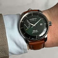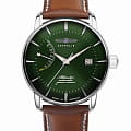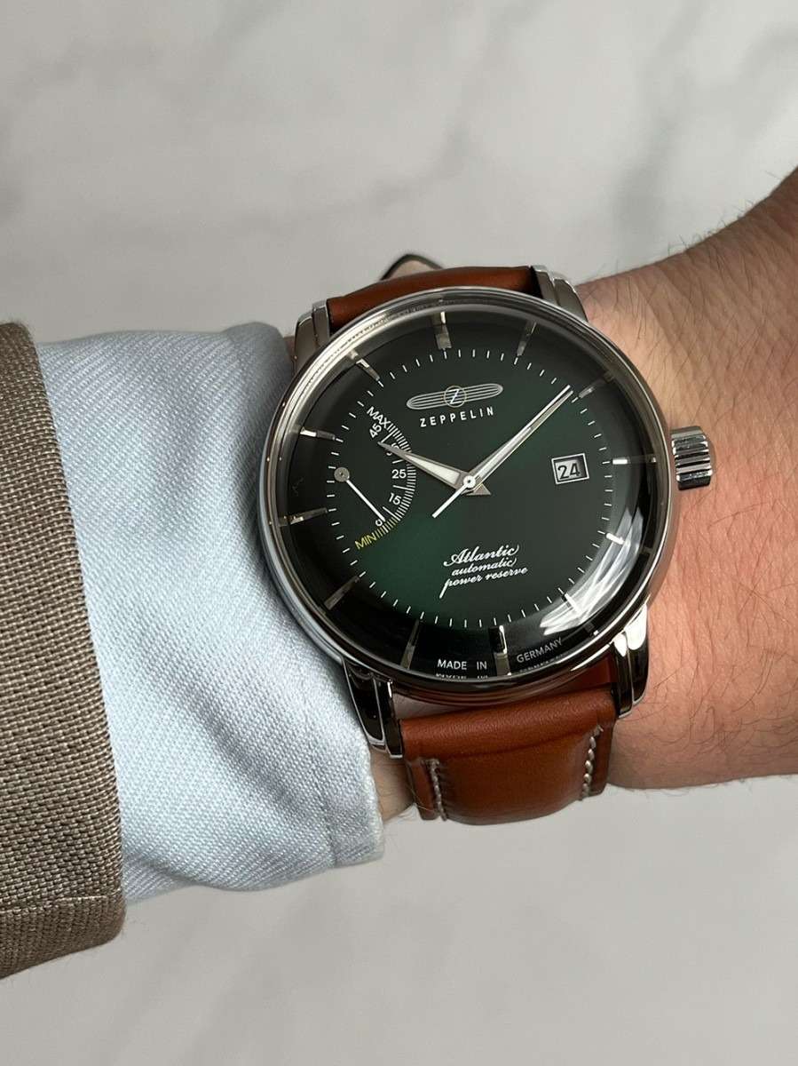 Часы Zeppelin 8462-4 — это стильные мужские часы, которые идеально подходят для мужчин, ценящих как классику, так и функциональность. Серебристый корпус из нержавеющей стали и зеленый циферблат создают элегантный и современный дизайн. Циферблат защищен закаленным минеральным стекломМинеральное стеклоМинеральное стекло представляет собой искусственно выращенный минерал кварца. Такое стекло отличается особой устойчивостью к повреждениям и царапинам. Уступает по некоторым качествам сапфировому стеклу., а индикатор запаса хода придает ему практичности. Крышка из минерального стеклаМинеральное стеклоМинеральное стекло представляет собой искусственно выращенный минерал кварца. Такое стекло отличается особой устойчивостью к повреждениям и царапинам. Уступает по некоторым качествам сапфировому стеклу. позволяет любоваться механизмом часов. Модель отличается светящимися стрелками и индексами благодаря люминесцентному покрытиюЛюминесцентное покрытиеПозволяет считывать показания времени в темноте. Производители наносят на стрелки, часовые индексы, безель или поверхность циферблата светонакопительный состав, дающий холодное свечение.. Коричневый кожаный ремешок обеспечивает комфорт и стиль, что делает эту модель идеальным выбором для любого случая. Дополнительной функцией часов является отображение дня месяца в положении "3 часа".  Водонепроницаемость часов составляет 50 метров, что означает, что вы можете спокойно принимать душ, надев Zeppelin на запястье. Эти часы подойдут для повседневного ношения и станут ярким акцентом в вашем наряде.