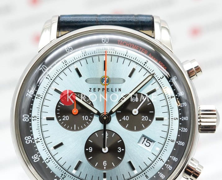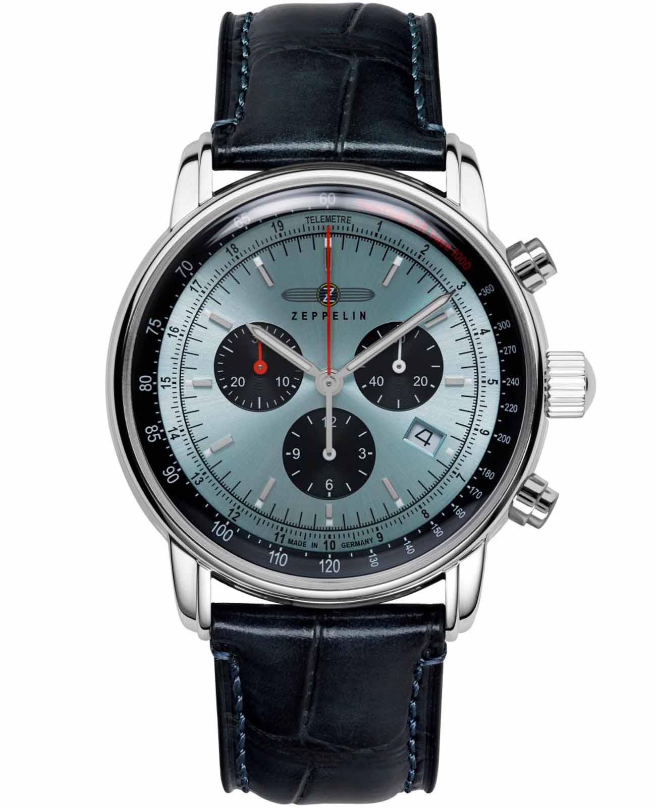 Мужские наручные часы-хронографХронографФункция позволяет измерять отрезки времени с особой точностью: часы, минуты, секунды. Верным признаком хронографа является наличие на циферблате 3 дополнительных окошек-счётчиков. Zeppelin 88862 из коллекции LZ14 Marine сочетают в себе классический дизайн и надежность современных технологий. Модель обладает круглым корпусом диаметром 42 мм, изготовленным из нержавеющей стали, что обеспечивает высокую устойчивость к внешним воздействиям. Браслет выполнен из натуральной кожи, гарантирующей комфортное ношение и безопасность. Ледяной синий циферблат с серебристыми индексами оснащен окном даты на «4 часах». Для защиты используется минеральное стеклоМинеральное стеклоМинеральное стекло представляет собой искусственно выращенный минерал кварца. Такое стекло отличается особой устойчивостью к повреждениям и царапинам. Уступает по некоторым качествам сапфировому стеклу., обеспечивающее прочную защиту от царапин. Часы работают на кварцевом механизме Ronda 5030.D швейцарского производства, что гарантирует точное время без необходимости подзаводки. Модель также является хронографом, оснащенным функцией секундомераСекундомерСекундоме́р — прибор, способный измерять интервалы времени с точностью до долей секунды., тахиметрической шкалой и малым циферблатом для малых секунд, делая ее идеальной для активного образа жизни. Водонепроницаемость часов достигает 5 атмосфер (50 метров), что позволяет использовать их во время плавания на поверхности, однако не рекомендуется для глубоководного дайвинга или занятий водными видами спорта с высоким уровнем активности.